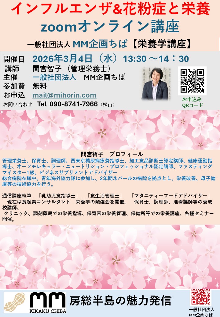 インフルエンザ&花粉症対策 zoomオンライン講座